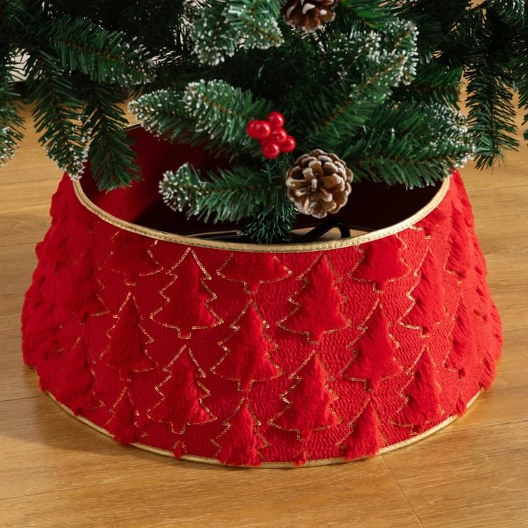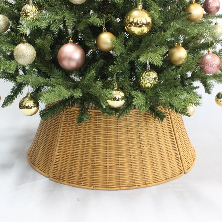Khaki & Coffee Mixed PE Woven Christmas Tree Collar – Wide-Strip Rattan Style Base Cover